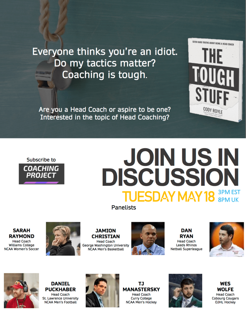 We are using Cody Royle’s groundbreaking new book as inspiration: ‘The Tough Stuff, Seven Hard Truths About Being a Head Coach’.
